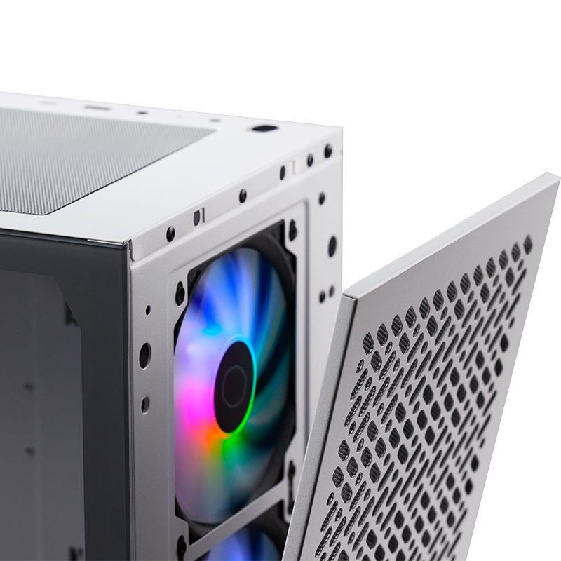 其采用较为传统的上下分仓结构,可免工具拆卸的磁吸前面板具备大面积进气格栅,电源仓后部也设有透气穿孔,允许主动散热电源多向安装。此外其前部、顶部、底部具备防尘滤网,主板背后留有 18.5mm 理线空间。