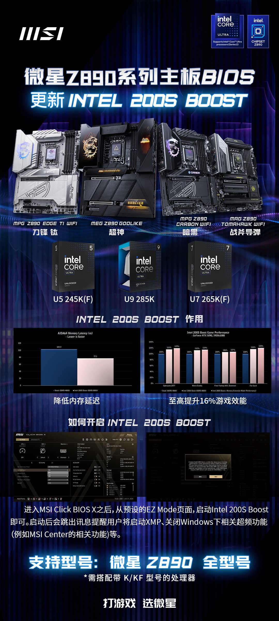 自 4 月 22 日起,部分 Z890 主板在安装最新 BIOS 后将支持运行 Intel 200S Boost 超频配置文件。以下是已经经过验证的主板列表(包括但不限于):