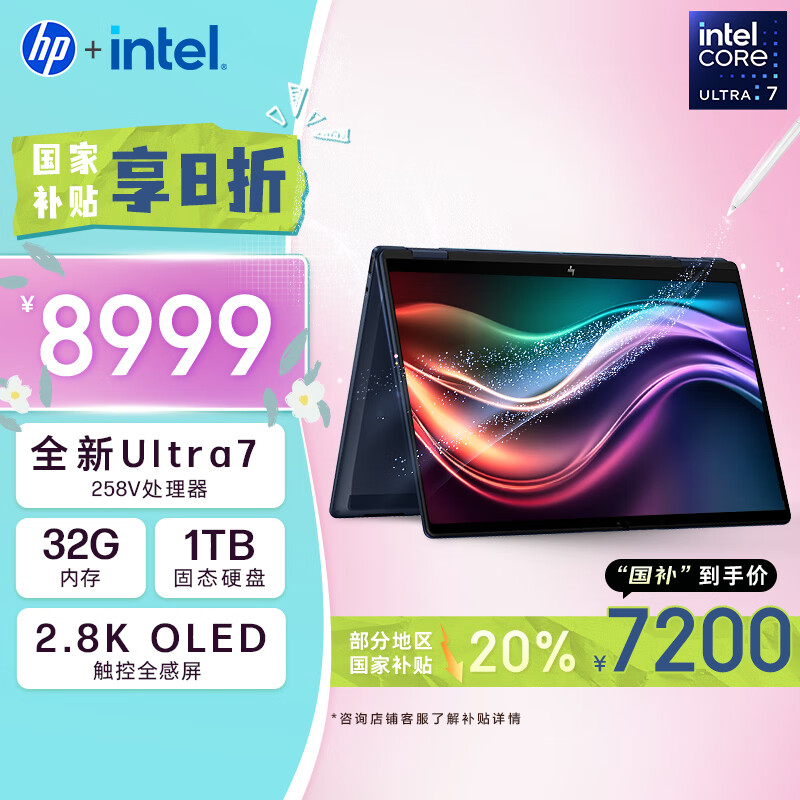 酷睿 Ultra7 258V、32GB、1TB、2.8K OLED 触控屏、蓝:8999 元,补贴后 7200 元