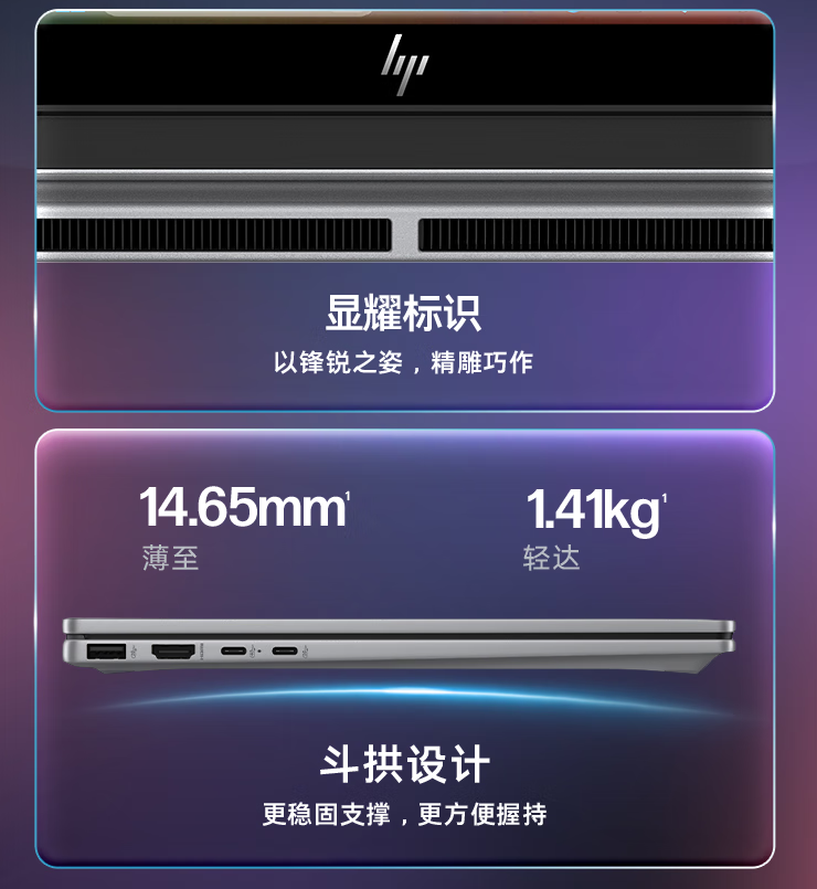 其他方面,该机采用了阳极氧化铝机身融合超细喷砂工艺、创新斗拱设计,支持 360° 无极转轴实现四模式自由切换,配备面对面式扬声器(DTS Ultra + poly studio)、500 万像素 AI 智能摄像头(IR 红外人脸识别)、一体式键盘、大尺寸触摸板、大尺寸键帽,提供雷电 4、全功能 USB-C、USB-A*2、HDMI、3.5mm 音频接口等,内置 59Wh 电池(14.75 小时续航),重 1.39~1.41kg ,厚 14.65mm,支持 Wi-Fi 7 和蓝牙 5.4。