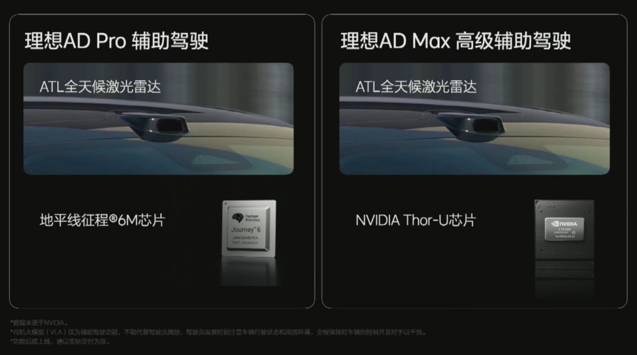理想 L6 智能焕新版全系标配激光雷达,不过 Pro 和 Max 版搭载了不同的芯片。