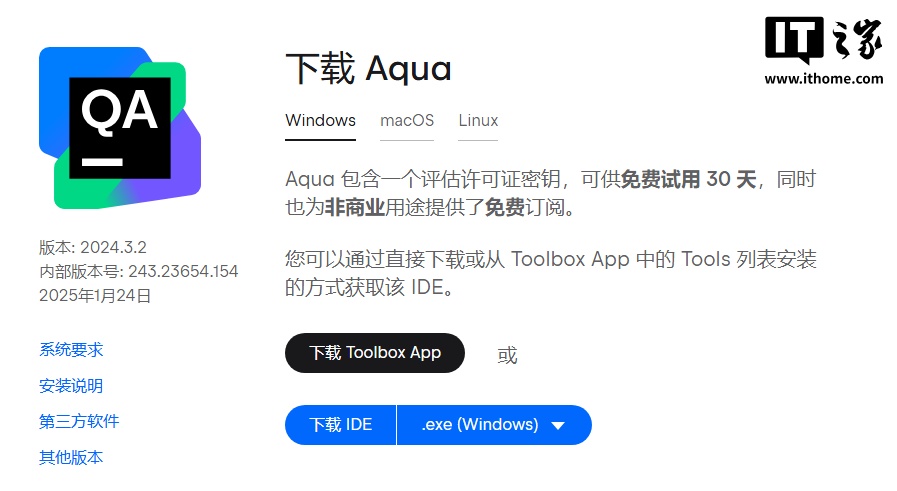 IT之家此前报道,JetBrains 于 2022 年 11 月测试上线 Aqua,并于 2024 年 5 月正式公开发布,支持 Windows、macOS、Linux 版本。