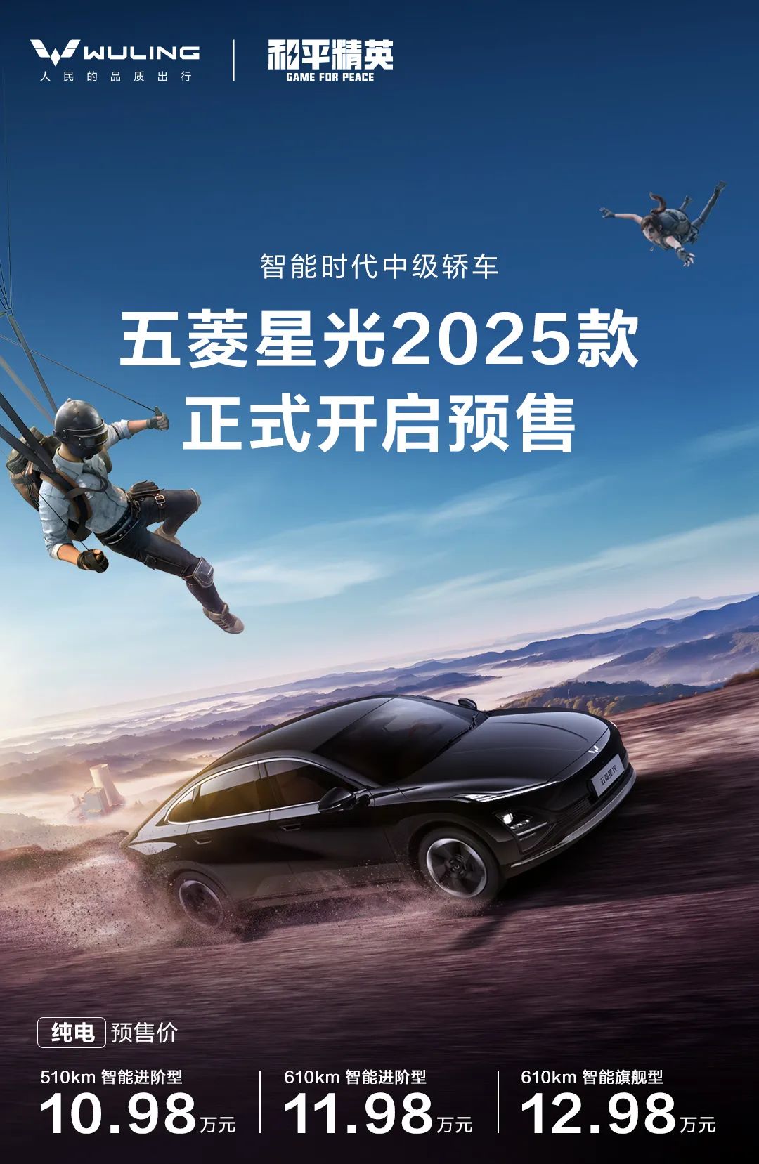 IT之家 4 月 23 日消息,五菱星光纯电轿车 2025 款今日在 2025 上海车展开启预售,预售价 10.98 万元起。