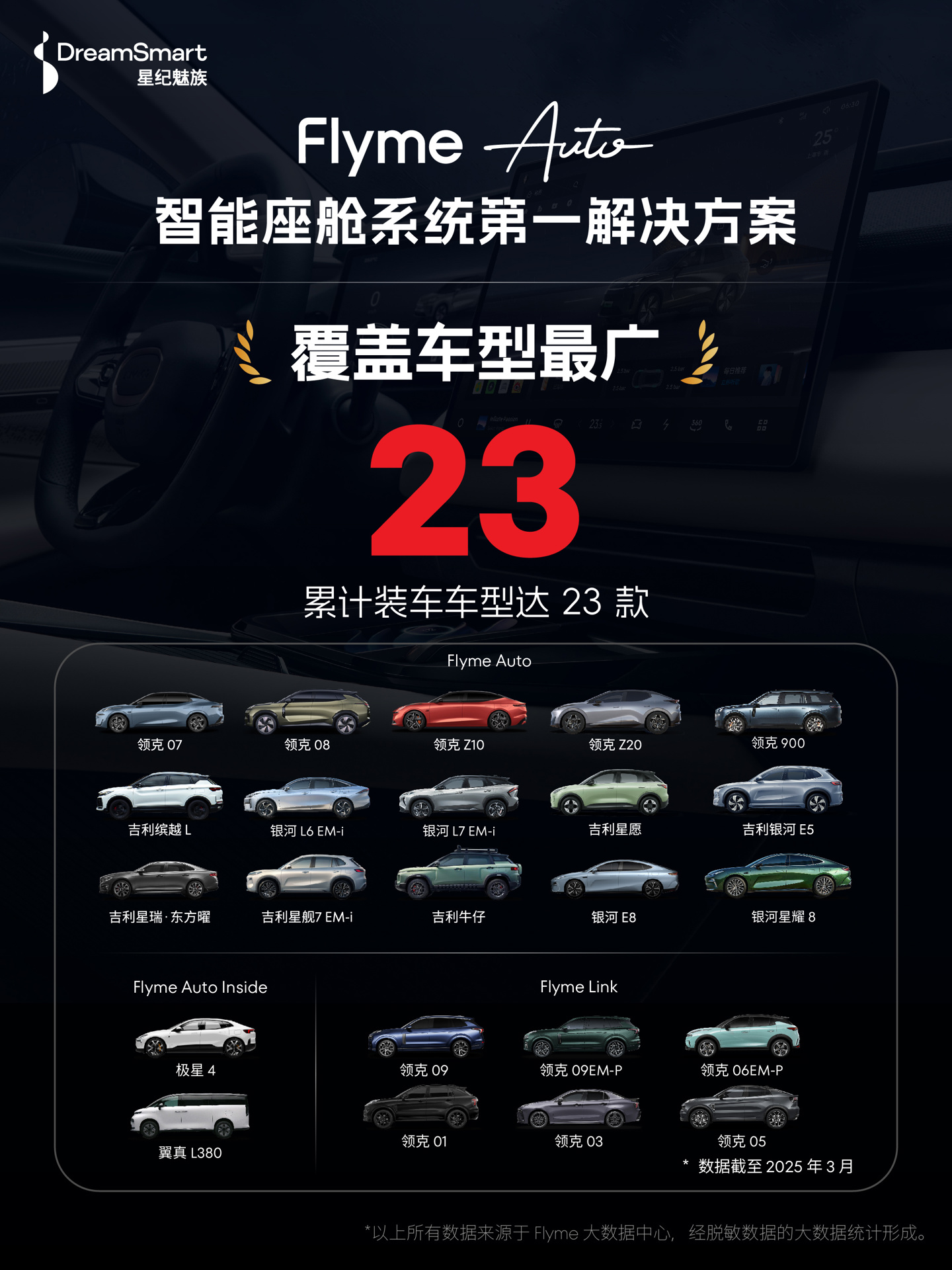 IT之家 4 月 23 日消息,星纪魅族今日在 2025 上海车展发布了《 Flyme Auto 体验白皮书》,宣布截止 2025 年 3 月合作车型总销量超 91 万,号称“智能座舱系统第一解决方案”,搭载量最高。