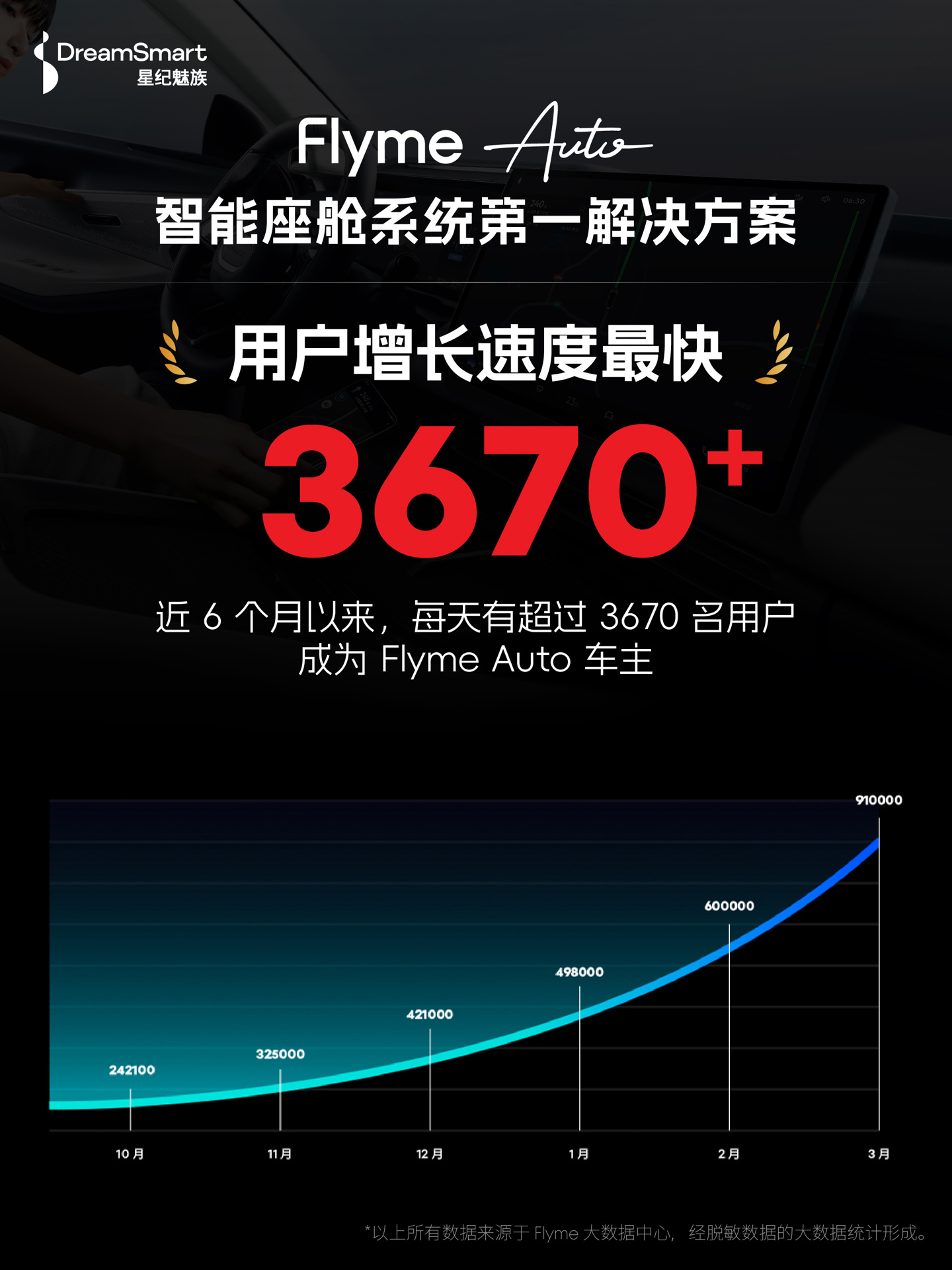 据介绍,Flyme Auto 近 6 个月以来,每天有超 3670 名用户成为 Flyme Auto 车主,宣称“用户增长速度最快”;目前 Flyme Auto 累计装车车型达 23 款。