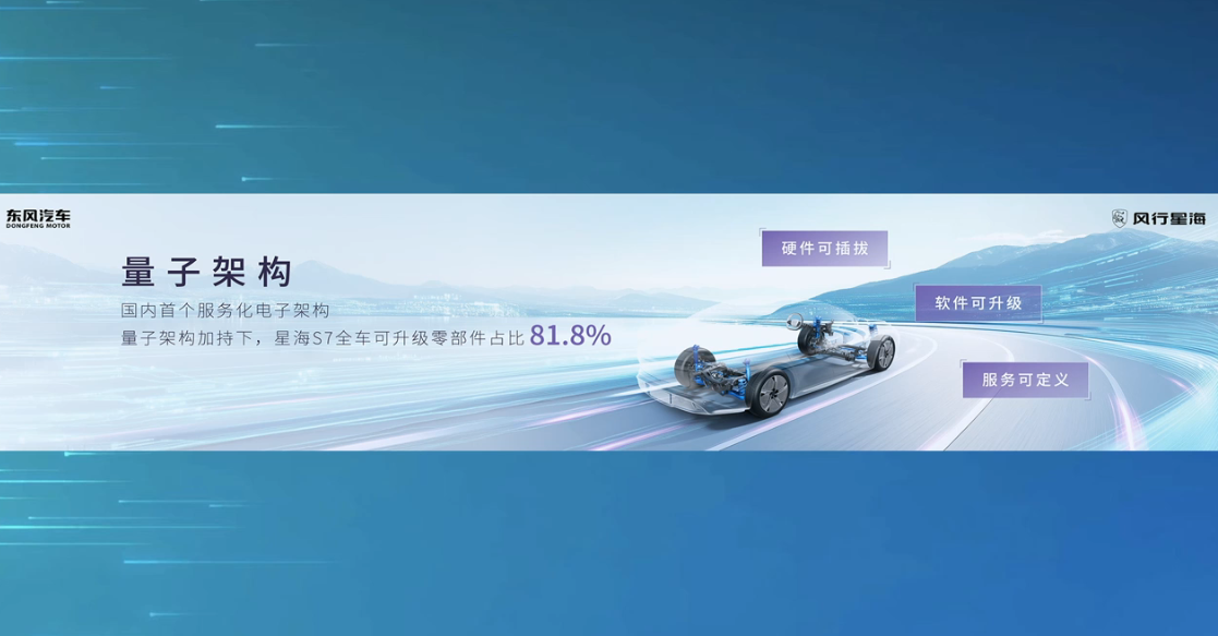 该车号称搭载国内首个服务化电子架构“量子架构”,全车可升级零部件占比 81.8%。