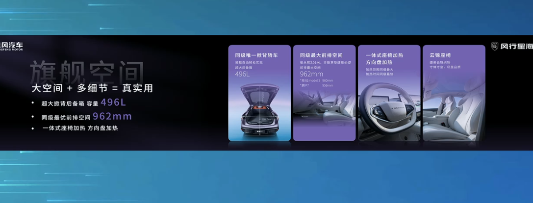 ▲ 纯电版本车型座舱官图此外,该车配备 8.8 英寸仪表和 15.6 英寸中控屏,支持手机互联、智能语音、50W 手机无线快充,内置了星海 OS 系统;配有 496L 掀背后备箱、座椅加热 + 方向盘加热等。