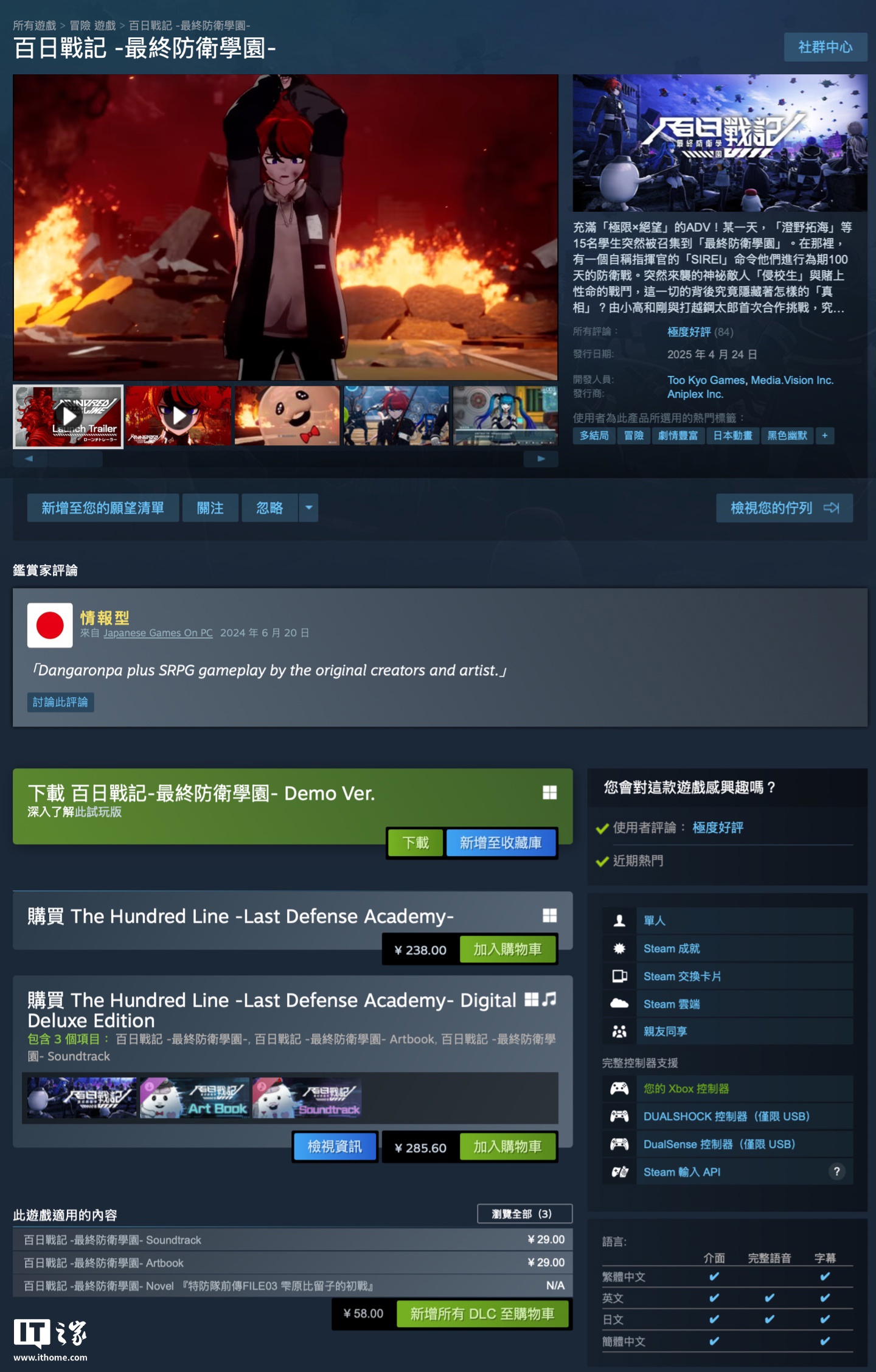 IT之家 4 月 24 日消息,《弹丸论破》制作团队新作《百日战纪 -最终防卫学园-》于今天正式发售,本作登陆 Switch / PC(Steam)平台。