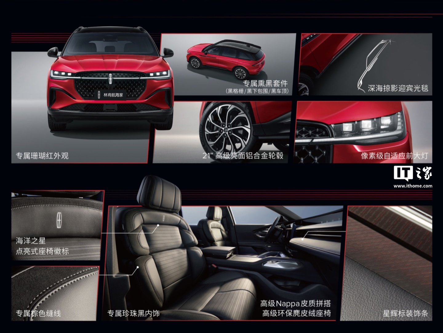 IT之家 4 月 24 日消息,林肯宣布旗下航海家 SUV 新增一款“亚特兰蒂斯版”正式上市,该版本车型采用专属珊瑚红外观及熏黑套件,搭载 2.0T 发动机,指导价 38.68 万元。
