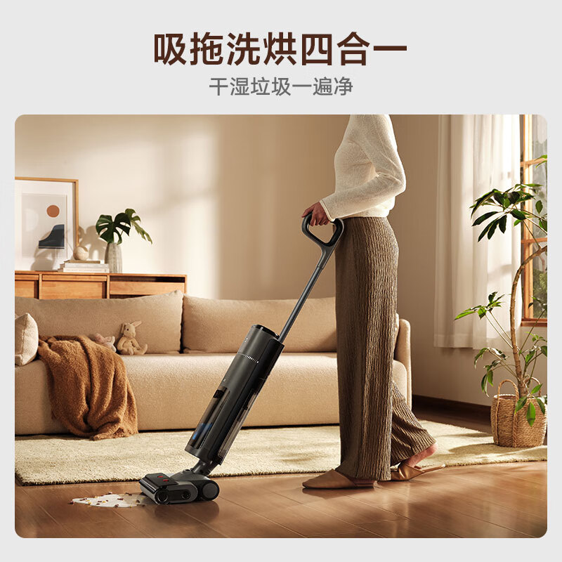 其他方面,该产品采用低重心设计,自带牵引力,单手即可掌控。LED 大屏实时显示主机状态,语音播报清晰提示操作指令,支持标准模式、吸水模式、除菌模式、模式强化等。