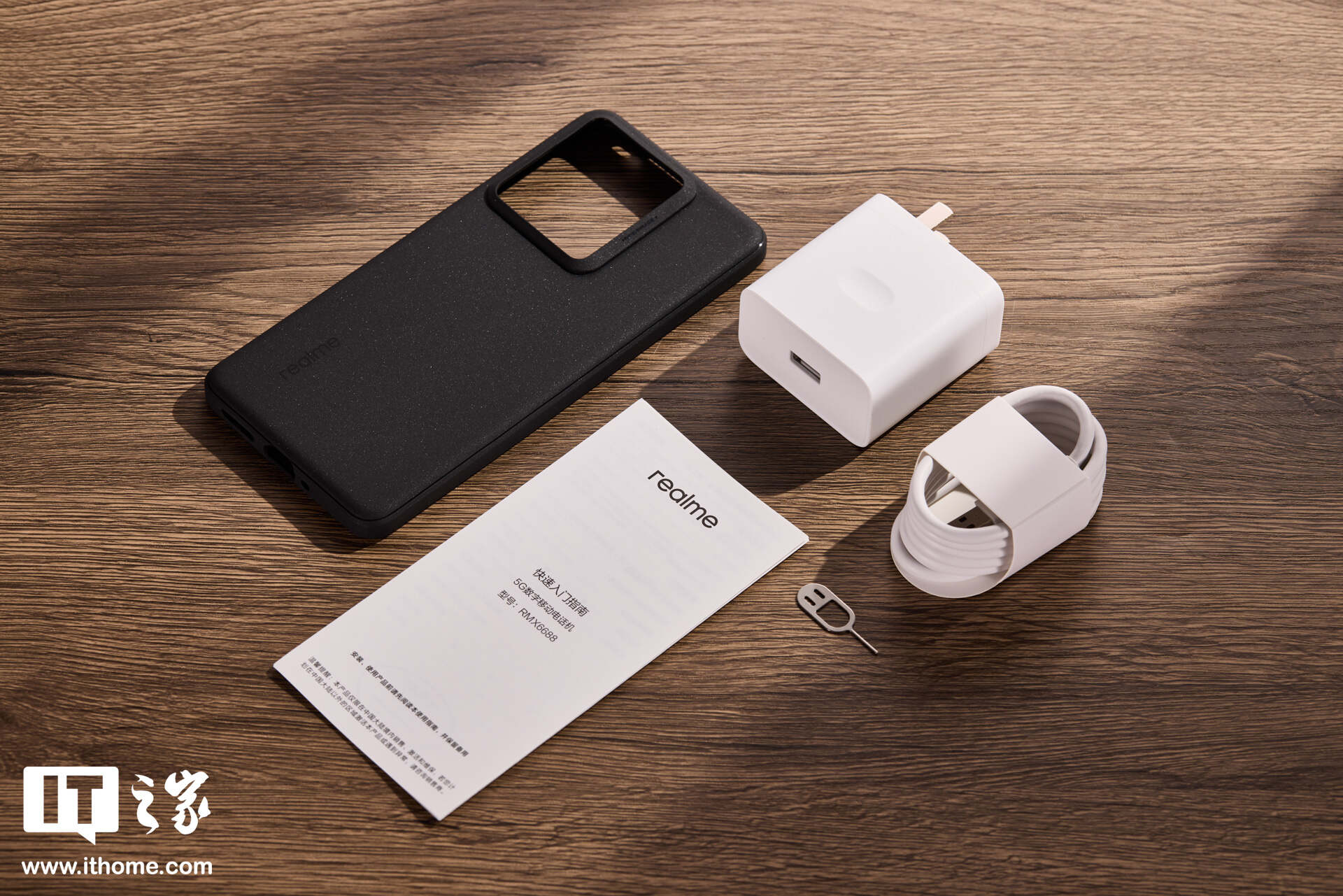 配件方面,真我GT7提供了黑色的保护壳,笑脸卡针,以及 100W 的充电器。