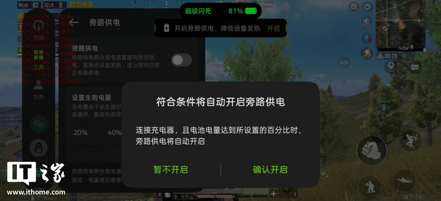 还可以设置生效电量,比如电量低于设定值时,是正常供电,而达到设定值时,则直接向游戏供电。