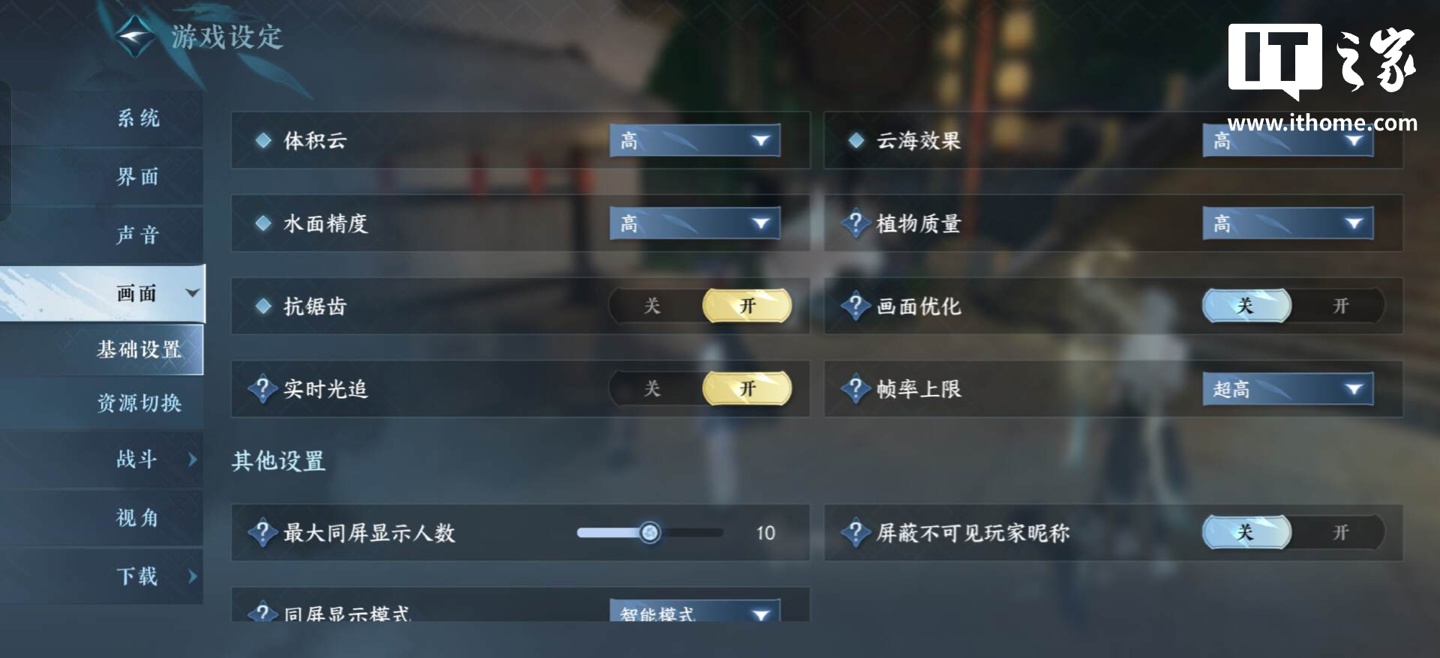 接下来实测光追开启后最高画质下的《逆水寒》手游,测试场景选择杭州,简单跑图。