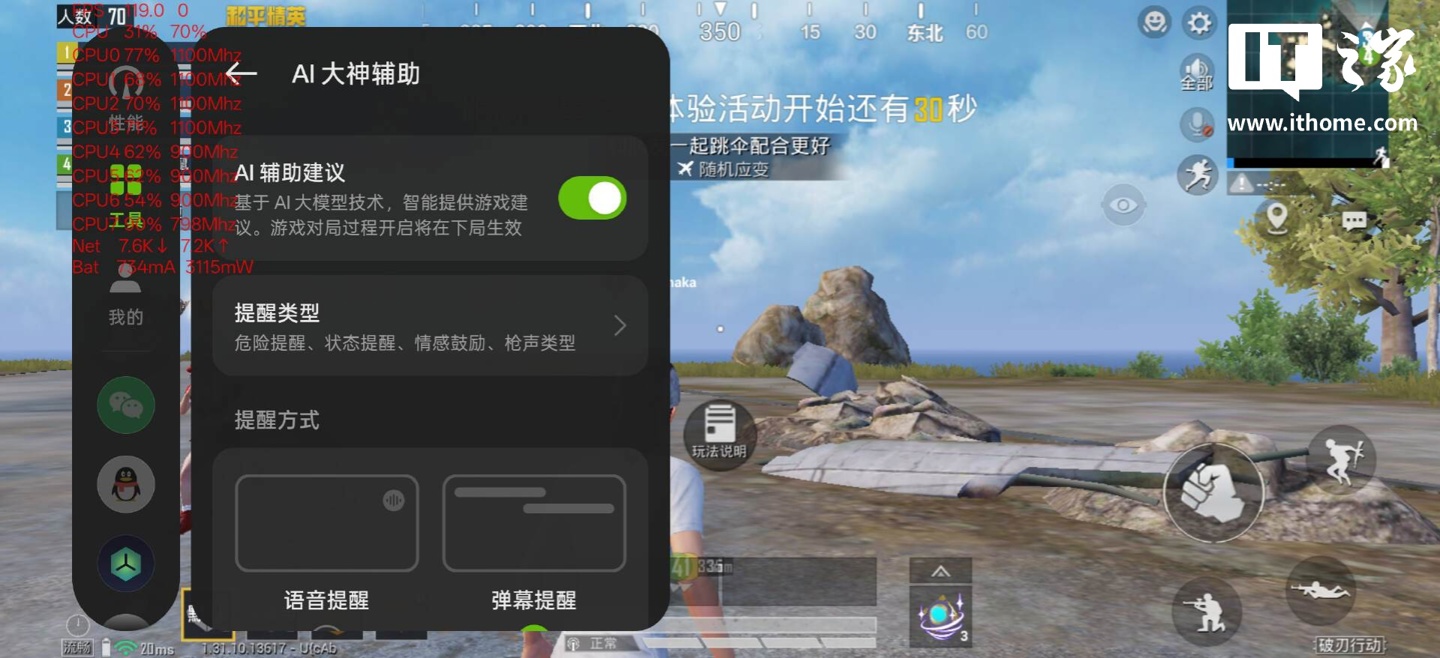 开启该功能后,“AI 大神辅助”会以透明小浮窗的形式在游戏上出现,可以通过语音或者是弹幕的方式提醒玩家。