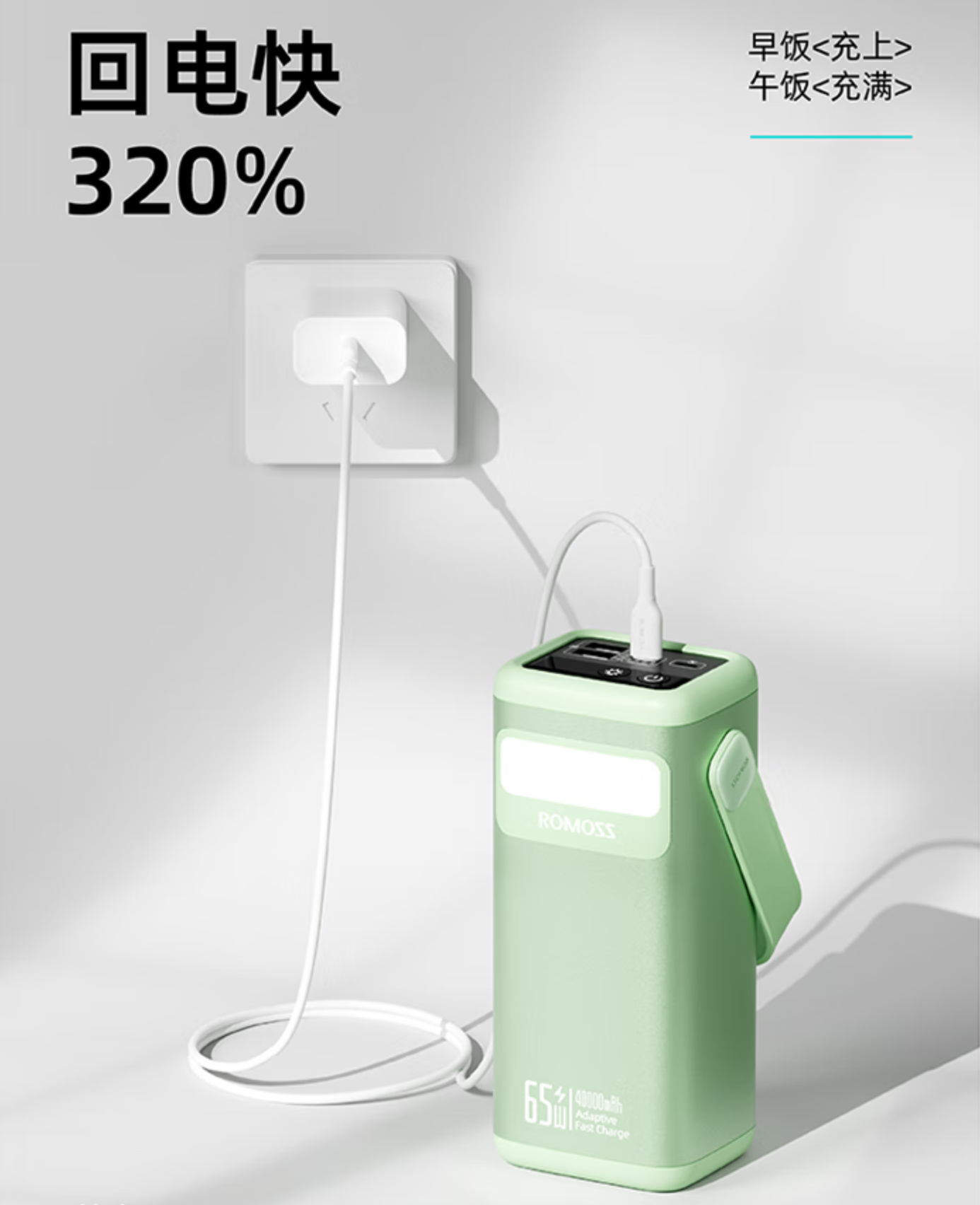 罗马仕 40000 毫安时屏显移动电源主打双向 65W 快充,重量为 1020 克,到手价为 239 元。