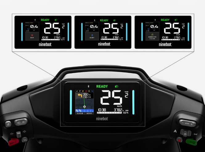 新品配备 5 英寸全贴合组合屏,支持 600 尼特真亮度、IPX7 满级防水,骑行状态能清晰、直观地被反馈。该车搭载 RideyFUN AIR 智驾系统,支持切歌、导航、来电提醒等功能,还可通过 OTA 无线升级获得新功能。