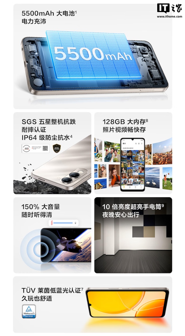 IT之家 4 月 27 日消息,vivo Y37c 手机现已发布,新机内置 5500mAh 电池、支持 IP64 级防尘抗水,定价 799 元、首发价 749 元。
