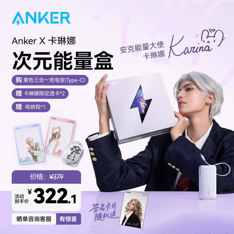 IT之家 4 月 27 日消息,安克宣布与 Coser 卡琳娜(Karina Melynychuk)合作,推出一款三合一充电头 / 移动电源礼盒,该礼盒主要包含充电宝本体和 coser 的海报、限定透卡、签名卡、收纳包周边,定价为 379 元,首发价 322.1 元(需联系客服)。