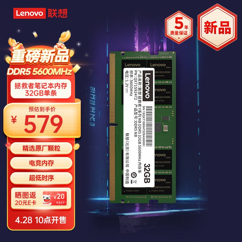 IT之家 4 月 28 日消息,联想今日新推出了一款拯救者品牌的 DDR5-5600 笔记本内存条,IT之家汇总如下: