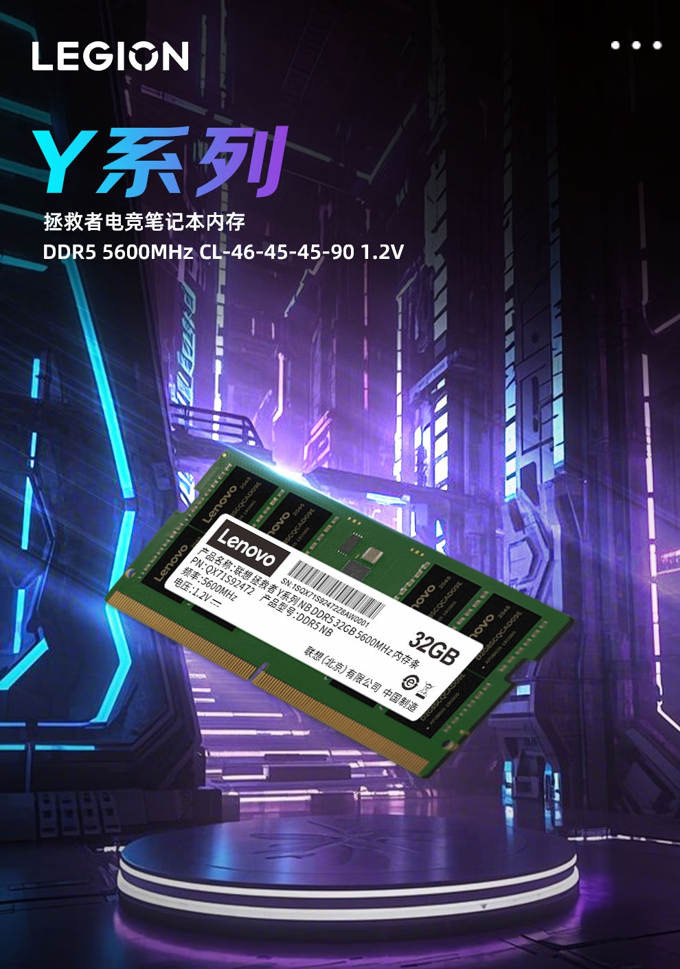 联想(Lenovo)拯救者 Y 系列 笔记本内存条