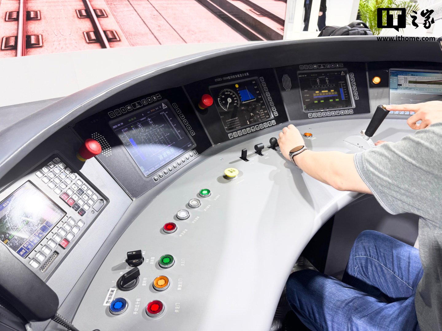 IT之家注意到,会场中还展示了高铁 / 动车模型、巡线无人机设备、高速铁路全场景数字孪生设备,同时还提供了复兴号列车模拟驾驶台供参展人员体验高铁驾驶、对标。