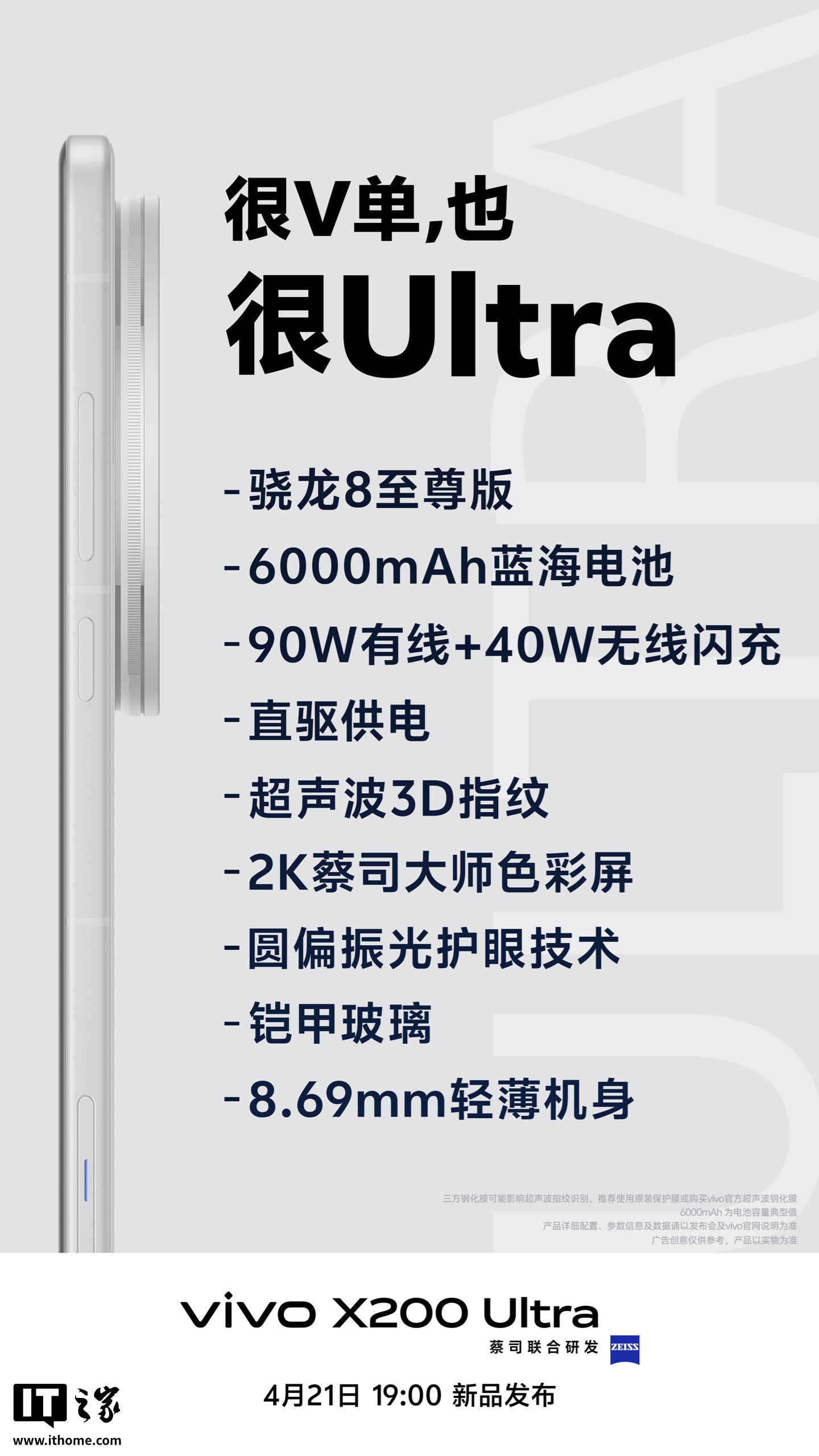 vivo X200 Ultra 手机 4 月 21 日发布,新机搭载骁龙 8 至尊版处理器、6000mAh 蓝海电池,IT之家附价格如下: