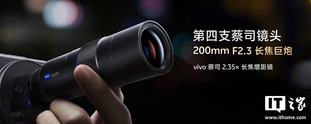 此外,vivo 还为 X200 Ultra 带来了“第四颗镜头”长焦巨炮 —— 与蔡司联合研发的 2.35x 长焦增距镜,200mm、F2.3 大光圈、开普勒结构 13 片高透玻璃镜片。