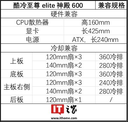 IT之家 4 月 29 日消息,酷冷至尊现已推出 elite 神殿 600 机箱。该机箱采用双舱全视海景房设计,侧透面板为整块一体成型高透钢化弧面玻璃,带来更为宽阔的箱内硬件展示角度。