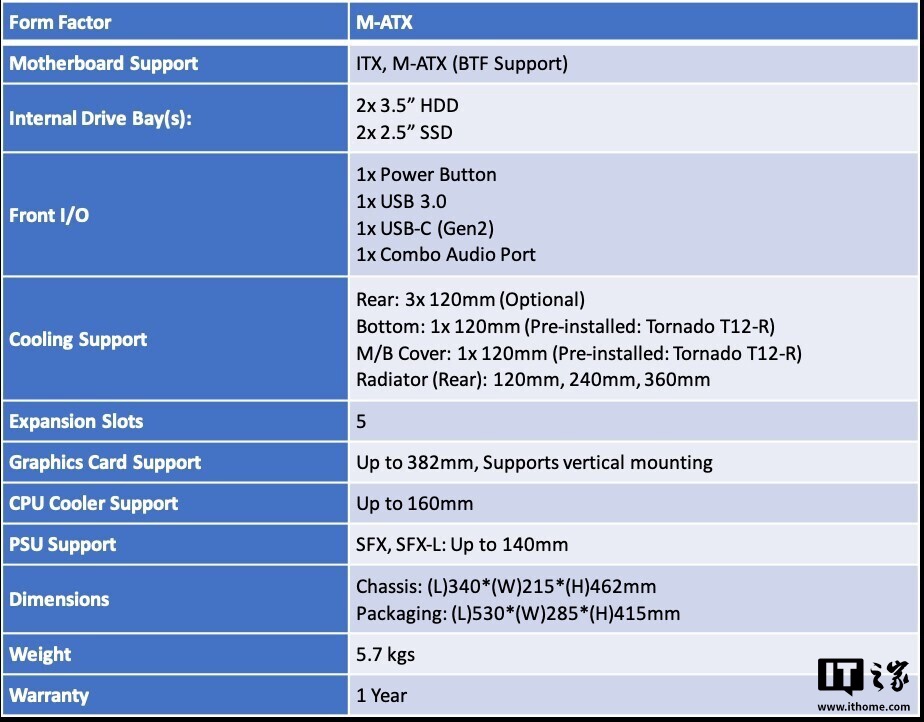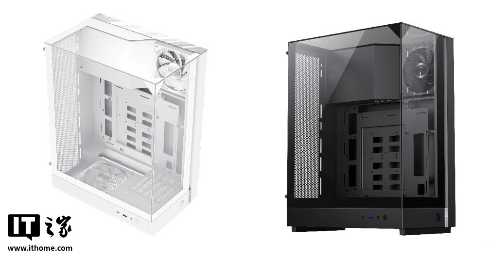 根据游戏帝国官方所述,该机箱采用三面钢化玻璃,正面、侧面和顶部均可呈现机箱内部全景,其 90 度翻转主板布局配合全新设计的机箱可形成立体散热风道;机箱预装两个 Tornado T12-R 120mm 风扇,支持 ARGB,最高支持 5 个 120mm 风扇或 360 水冷。