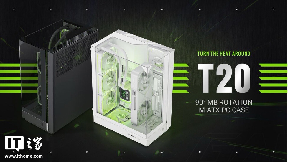 IT之家 4 月 29 日消息,游戏帝国(GAMEMAX)今日推出了 T20 游戏机箱,该机箱主打全景侧透、现代美学,兼容 M-ATX 主板。
