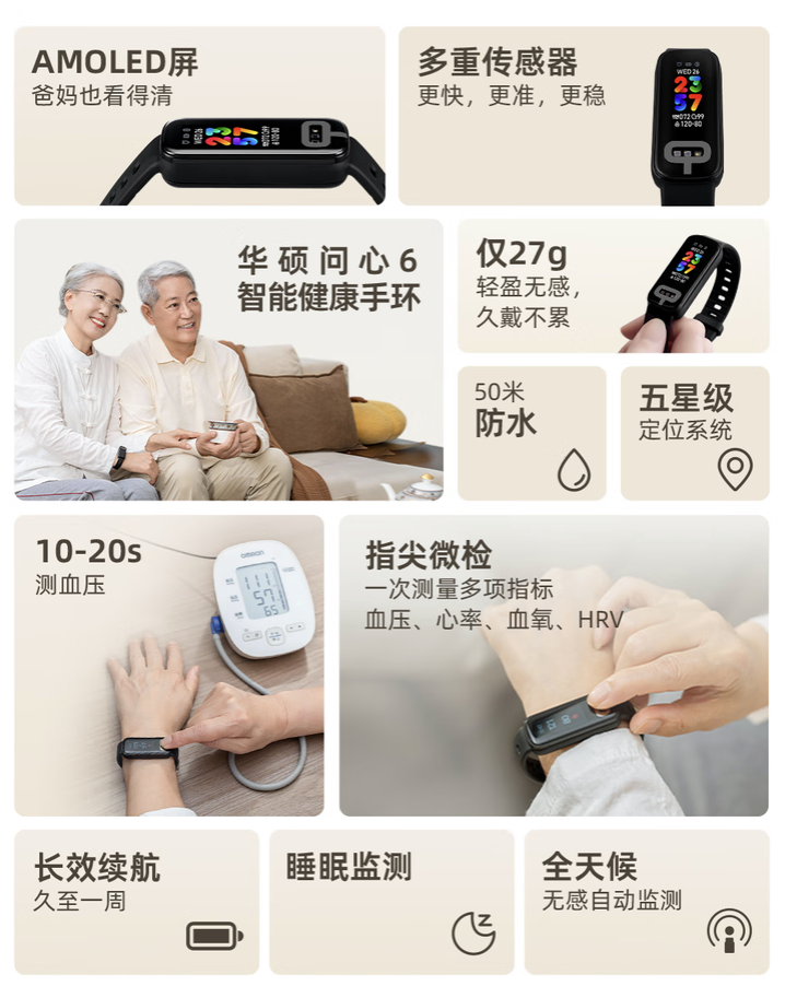 IT之家 4 月 29 日消息,华硕旗下“问心 6”主动血压测量手环现已在京东开启首销,这款手环主打“15 秒测血压、7 天续航”,定价为 1199 元。