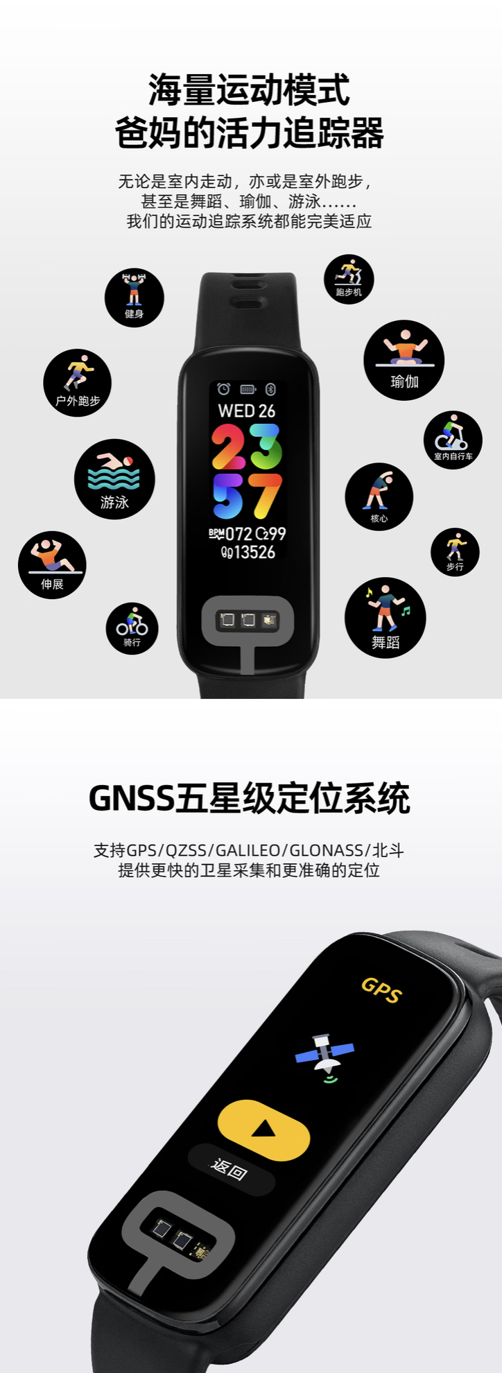 IT之家注意到,该智能手环还支持多种运动跟踪功能,内置 GNSS 五星级定位系统,支持女性健康追踪功能。