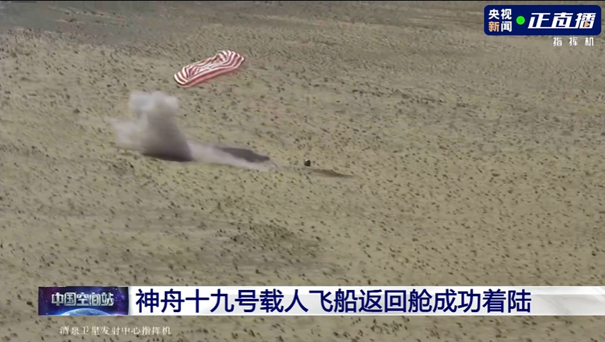 IT之家 4 月 30 日闪讯速报,神舟十九号载人飞船返回舱在东风着陆场成功着陆。目前,搜救回收空中分队已经抵达返回舱着陆点。