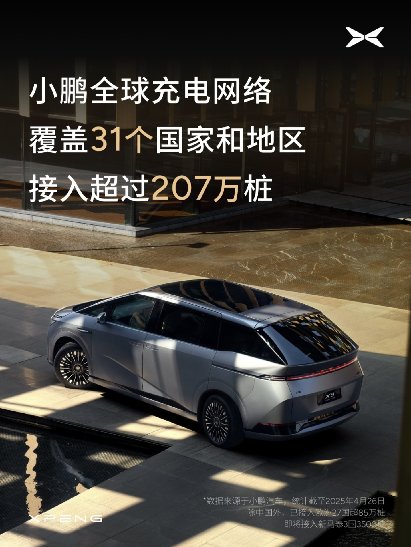 IT之家注意到,小鹏同时表示该公司目前正在国内外持续扩容充电服务,目前该公司已携手欧洲及新加坡最大充电运营商,接入欧亚 30 国超 85 万充电桩,目前,小鹏汽车国内充电网络自营超 2160 站 1.1 万桩,接入超 9.9 万站 121 万桩,在全球 31 个国家和地区合计已接入超 207 万个充电桩。