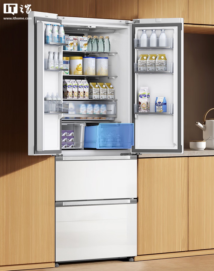 据官方介绍,这款新品的冷藏、冷冻各搭载独立蒸发器、风机。风路独立循环,冷冻和冷藏互不干扰互不串味。冷藏超薄风机厚度仅 20mm、大风量集成式底部散热,60cm 超薄机身齐平嵌入橱柜,约 0.52㎡小占地带来 508L 大容量。