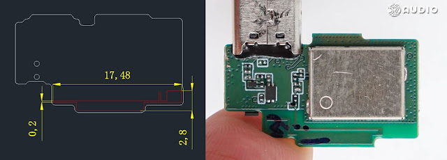认证文件显示 YY2988 的 PCB 板面积约为 23 x 13 毫米,以下图片对比了 INZONE Buds USB receiver 中的 PCB,可以看到两者外形基本相同。