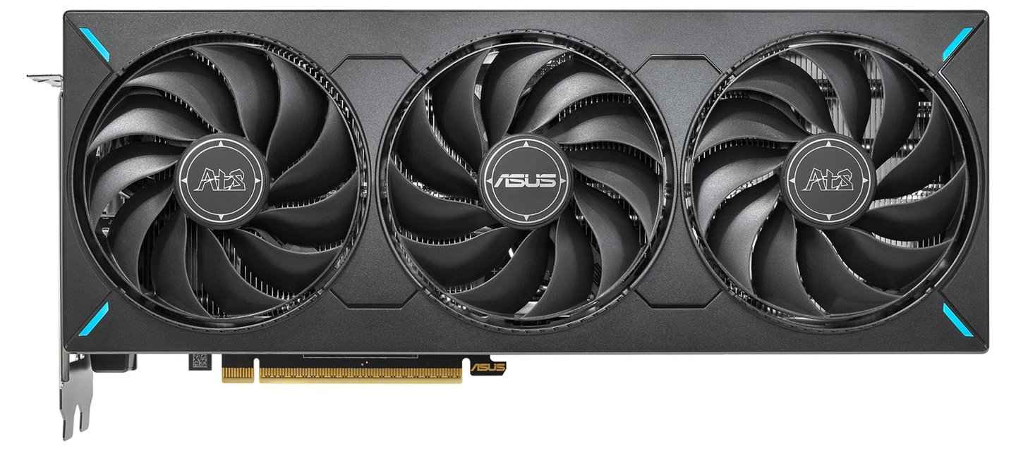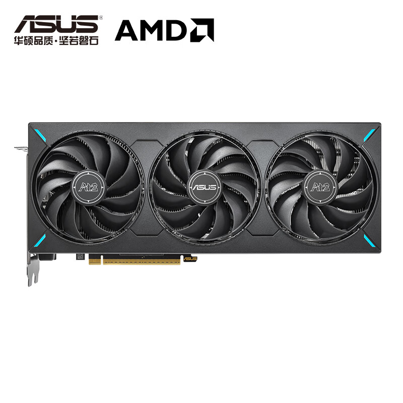 华硕 ATS RX 9070 GRE O12G 显卡采用三风扇散热模组,三维 305×126×50 (mm)。其搭载相变 GPU 导热垫,具备 MaxContact 镜面直触技术,三颗轴流风扇采用环叶 + 双滚珠轴承的设计。