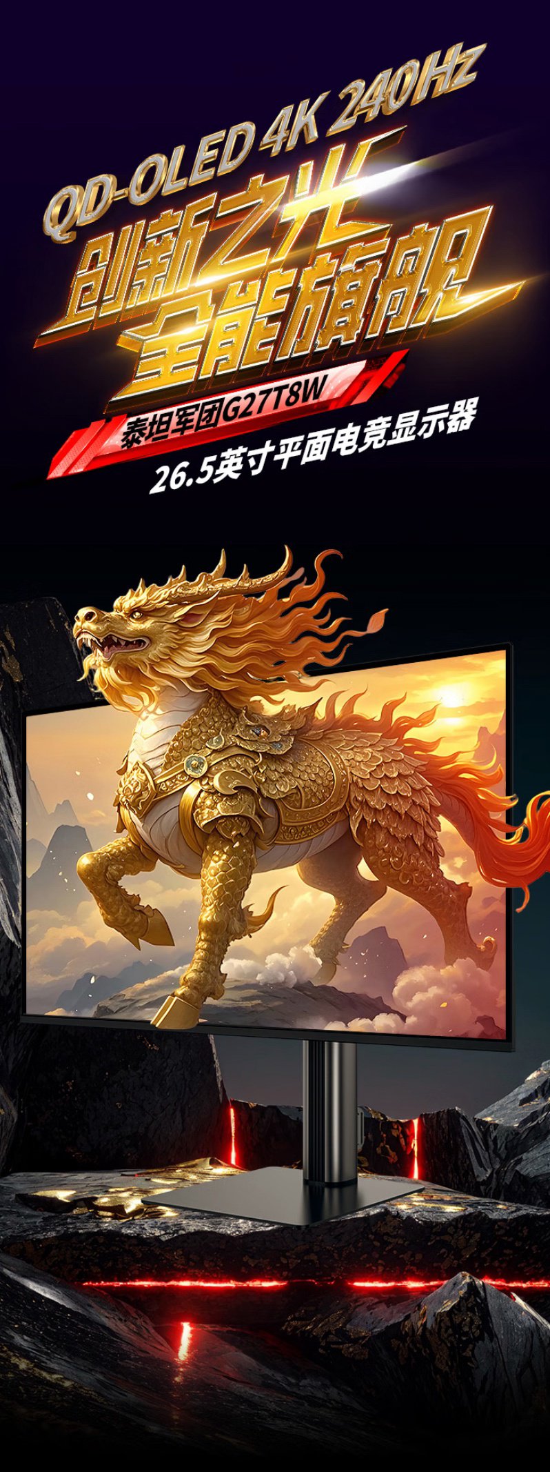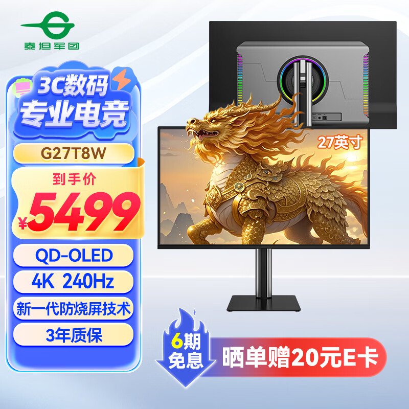 IT之家 5 月 5 日消息,泰坦军团现已在京东上架一款型号为“G27T8W”的 26.5 英寸显示器,这款显示器主打“4K 240Hz QD-OLED”,定价为 5499 元。