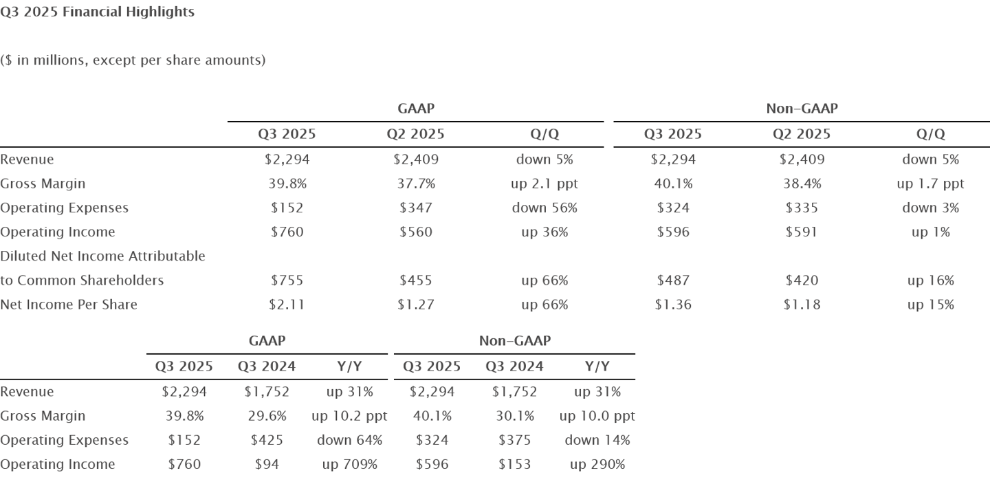 在截止于今年 3 月 28 日的该企业 2025 财年第三财季中,这家机械硬盘巨头实现 22.94 亿美元(IT之家注:现汇率约合 166.15 亿元人民币)营收,环比下降 5%,较行情低迷的上一财年同期提升 31%。第三财季西部数据 Non-GAAP 毛利率站上 40.1%,比前一季度和去年同期均有提升。