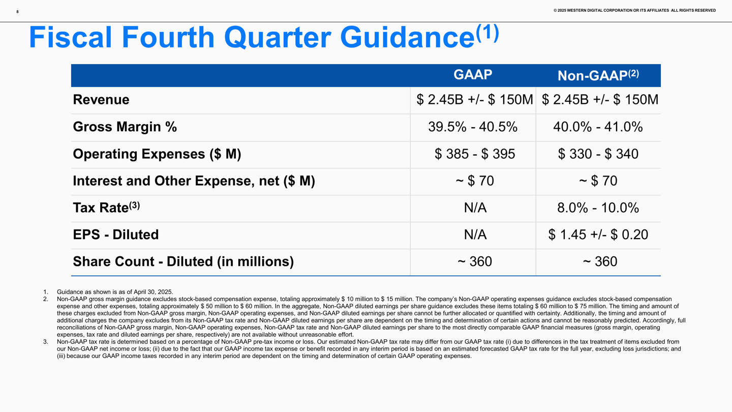西部数据预测该企业 2025 财年第四财季营收可达 24.5±1.5 亿美元,Non-GAAP 毛利率在 40.0~41.0% 区间。