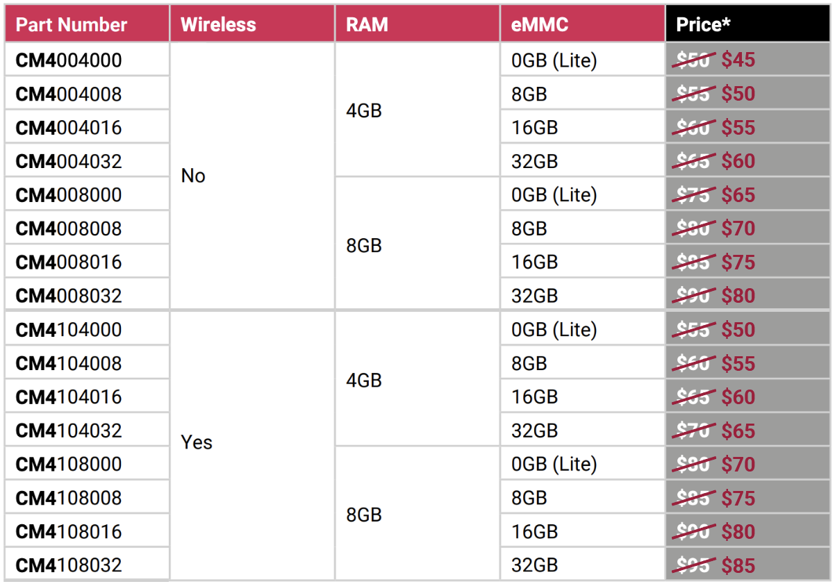 这意味着 Raspberry Pi CM4 的 4GB 版本起步价降至 45 美元(现汇率约合 326 元人民币),8GB 版本起步价降至 65 美元(现汇率约合 471 元人民币)。