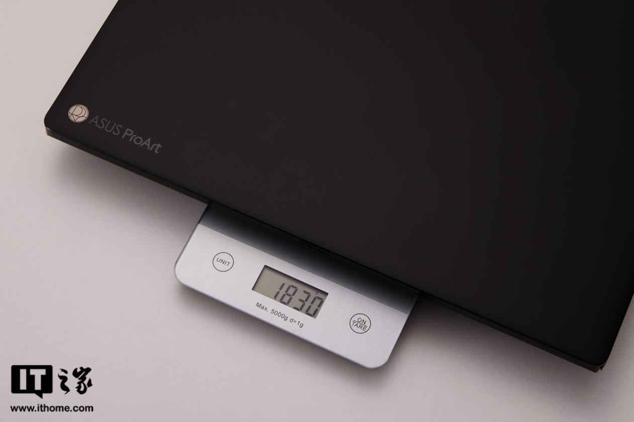尺寸方面,ProArt 创 16 2025 拥有 16 英寸机身,IT之家实测机器厚度约 15mm,单机重量约 1.83kg,与上代基本保持一致。机身背面有 3 颗状态指示灯,可方便用户了解接电和电池状态。