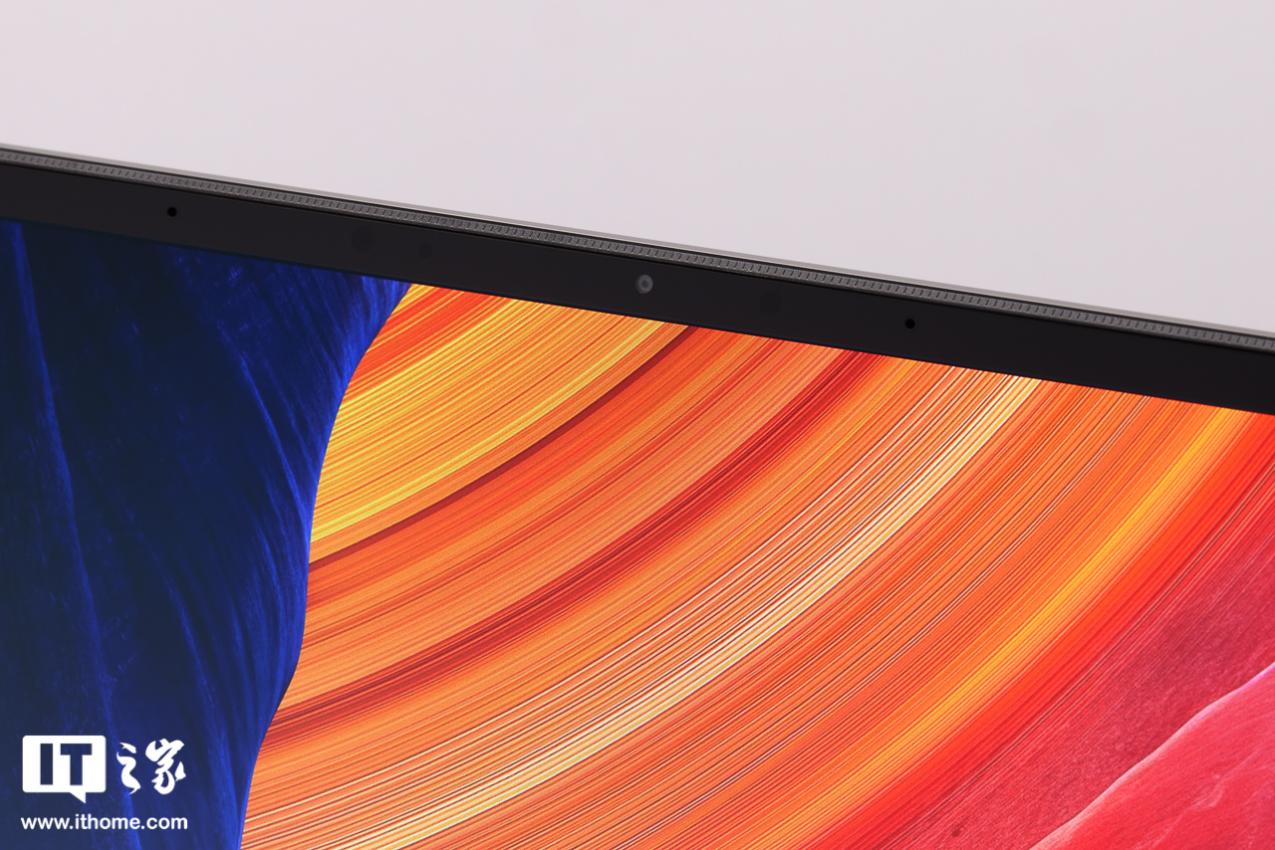 屏幕顶部居中位置有一颗高清摄像头,两侧还有传感器和拾音麦克风,边缘略微凸起的包边可以更好保护屏幕,并方便开合操作。