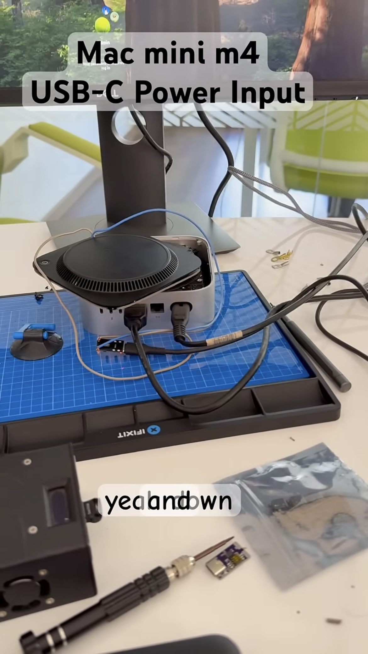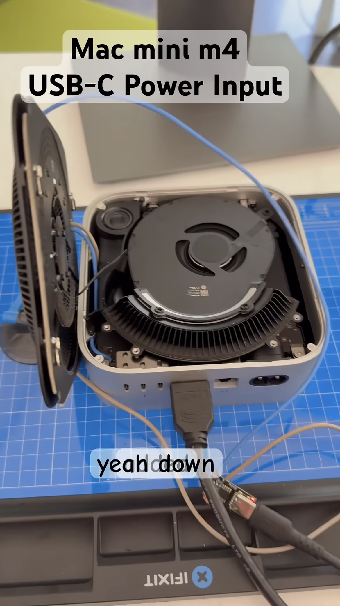 该用户通过视频展示,在加装了一个 USB-C PD 供电板模块后,成功使用 USB-C 线缆启动了 Mac mini。该模块需连接外壳底板和主板的“正极”接口,配合支持 PD 协议的充电宝即可完成供电。