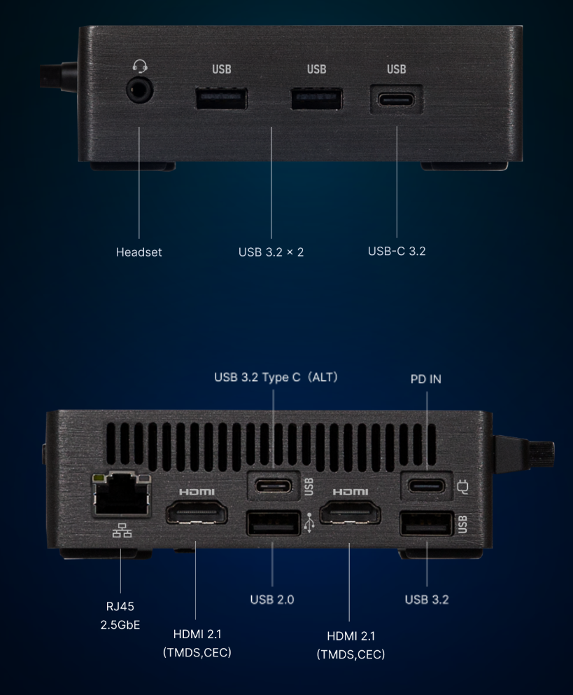 拓展方面,它提供了三个 USB 3.2 Gen 2-A、两个 USB 3.2 Gen 2-C(DP Alt)、一个 2.5GbE 网口(IT之家注:I226V)、两个 HDMI 2.1 接口,可实现四路 4K UHD 输出;支持 Wi-Fi 7 及蓝牙 5.4。
