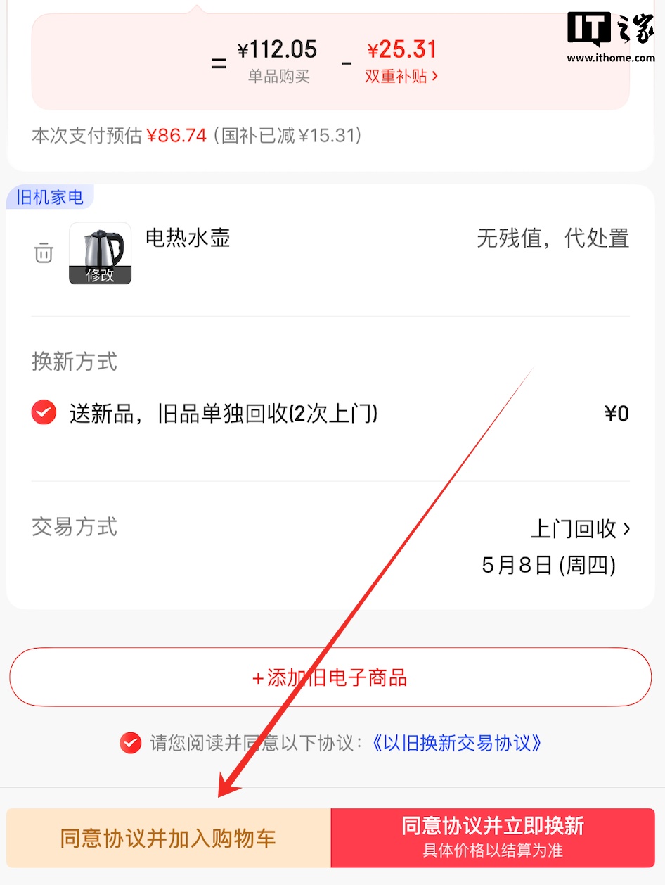 以旧换新加购物车: