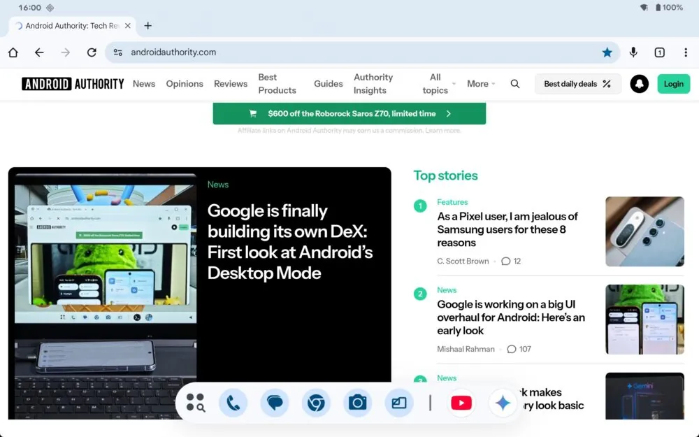 谷歌于 1 年前就开始尝试该特性,在外观和行为上与平板任务栏相似,但针对手机小屏幕进行了缩放调整。平板电脑的任务栏自 Android 12L 起应用于大屏设备,位于屏幕底部,提供快速访问应用的功能,用户可选择常驻或临时显示模式。