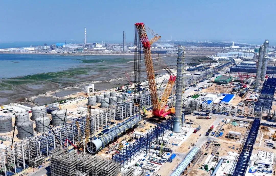 徐工集团介绍称,施工现场风速多变、昼夜温差大,塔器体量庞大且结构复杂,对吊装精度和设备稳定性提出了极高挑战。从急冷水塔到百米高的丙烯塔,徐工 XGC88000 突破行业瓶颈,完成的每一吊都精确控制在毫米级误差范围内。