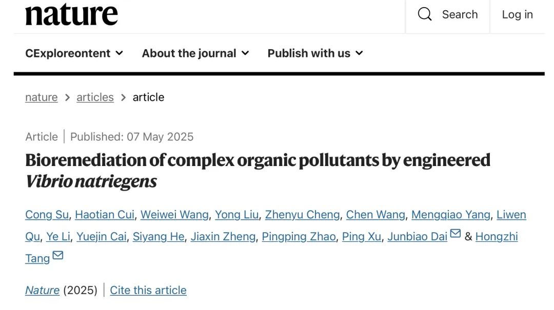 该项研究为解决石化废水排污、海洋石油泄漏等全球性环境问题提供了全新的技术方案。相关研究成果以“Bioremediation of complex organic pollutants by engineered Vibrio natriegens”为题,于 2025 年 5 月 7 日在线发表在《自然》(Nature)上。