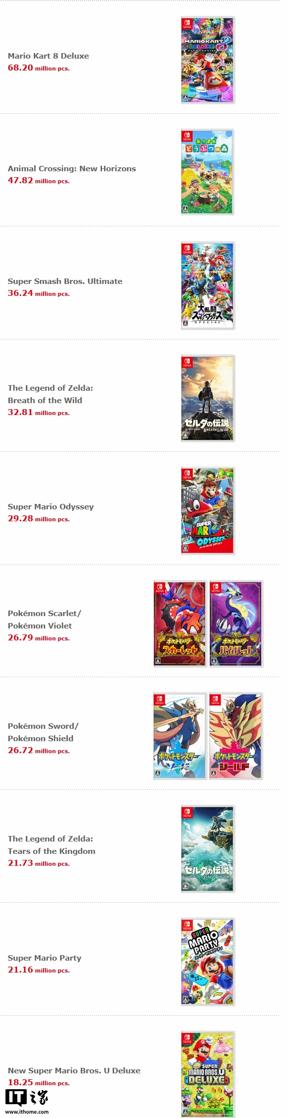 在游戏销售方面,截至 2025 年 3 月 31 日,10 款最畅销的第一方 Switch 游戏如下: